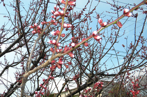 下の画像は、道路際にある梅ノ木です。昨年、剪定したこともあってか、つぼみが元気よく、