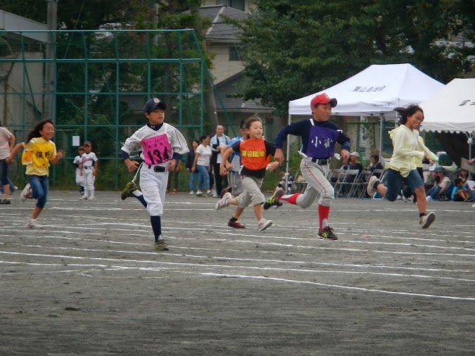 徒競走では、やはりライバル心が燃えるのでしょう、熱いデッドヒートでした。