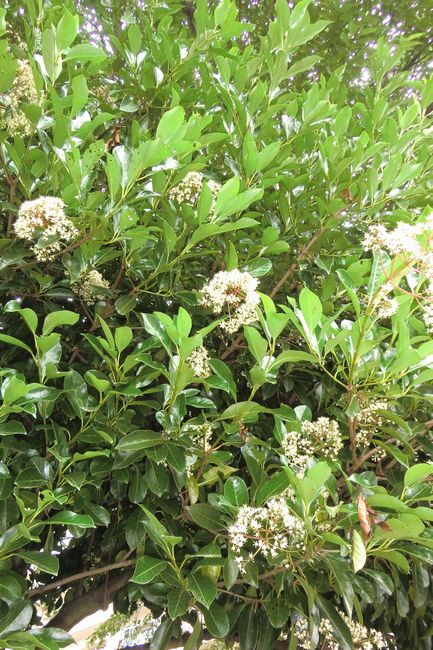 風雅な名前のこの樹木は沿海地に自生し、庭木、公園の植木や街路樹として多用されていますが、特筆すべきは防風、防火に大変強い樹木だという事です。多肉質の大きな葉が密生しているため防火性が強く、大気汚染や潮風にも強いため、昔から屋敷の北、西側の高い生け垣として利用されてきました。