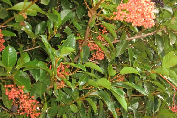 今、12号棟玄関脇や11号棟東側買い物道路沿いで、珊瑚色をしたとても美しい実を付けています。