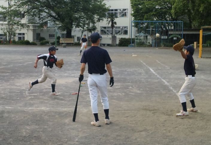 練習の最後の最後にノックがあり、最後は走りこんでキャッチします。