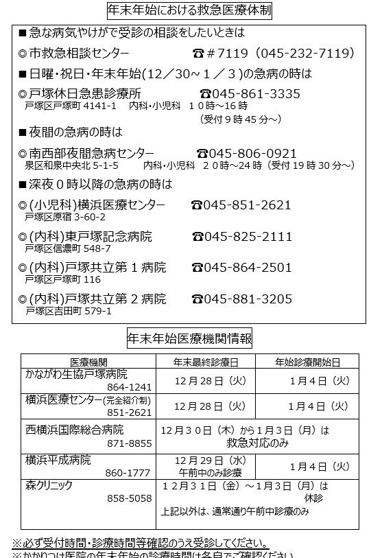 年末年始における救急医療体制