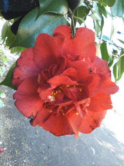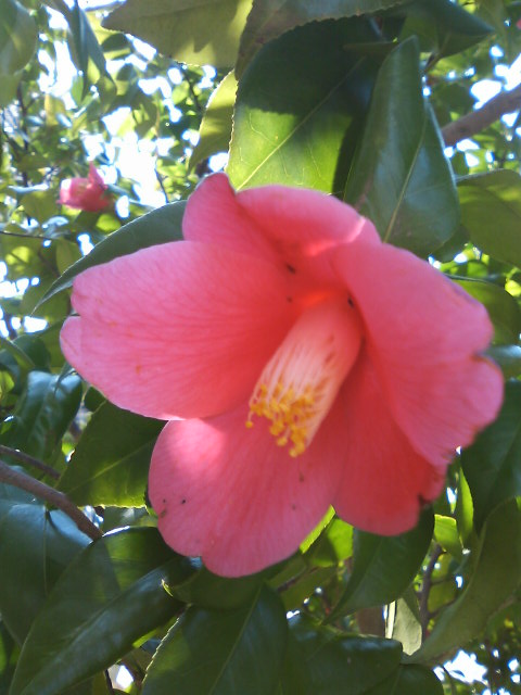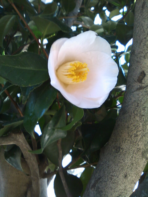 冬から春に掛けて濃い緑の艶のある葉っぱの中に咲き、ハイツ内にも あちこちにあり、今が見頃でしばらく楽しめます。