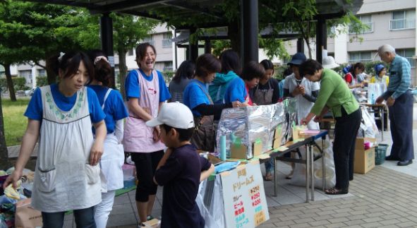 今日は県ハイツの集会所前でバザーがありました。