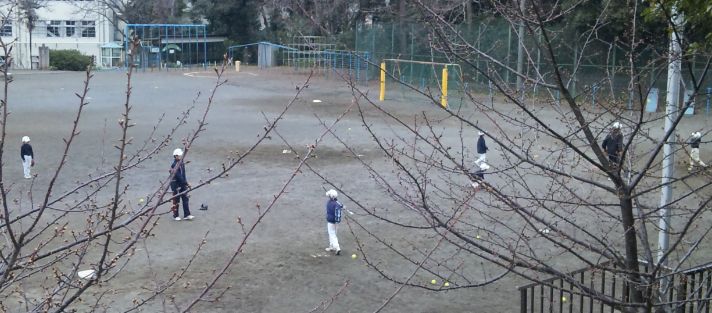 桜のつぼみのような選手たちが、グランドいっぱいに声を響かせて、練習にはげんでいます。