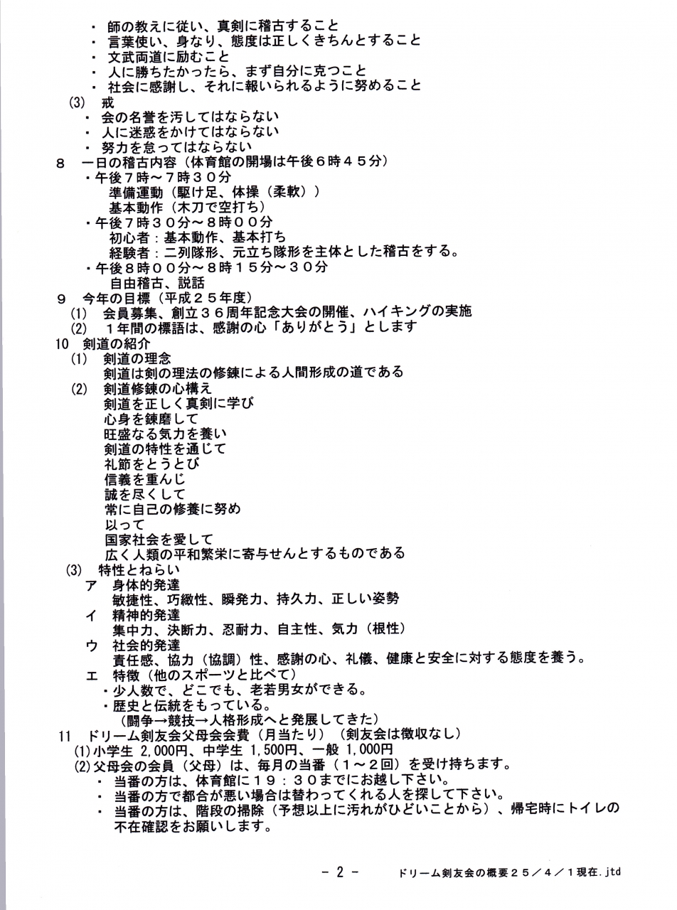 (2) ドリーム剣友会会則